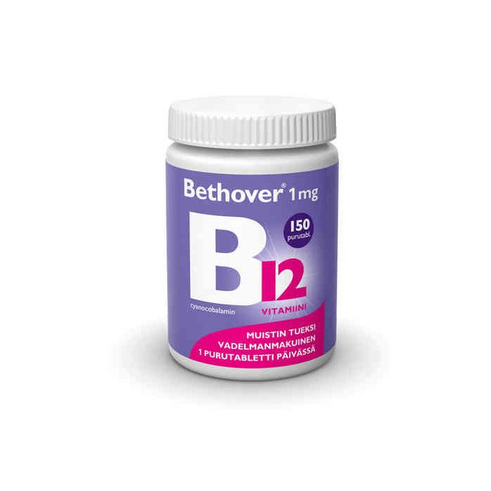 B12-vitamiini imeskelytablettina muistin ja jaksamisen tueksi. B12-vitamiini on tärkeä vitamiinilisä mm. ikääntyville ja kasvissyöjille. Ei sisällä eläinperäisiä ainesosia, sopii vegaaneille. Tuote on laktoositon, maidoton gluteiiniton ja sokeriton.
