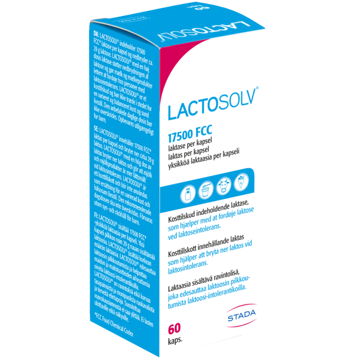 LACTOSOLV® är ett kosttillskott och bör inte användas som ersättning för en varierad kost och hälsosam livsstil. Den rekommenderade dagsdosen ska inte överskridas. Förvaras utom syn- och räckhåll för barn.