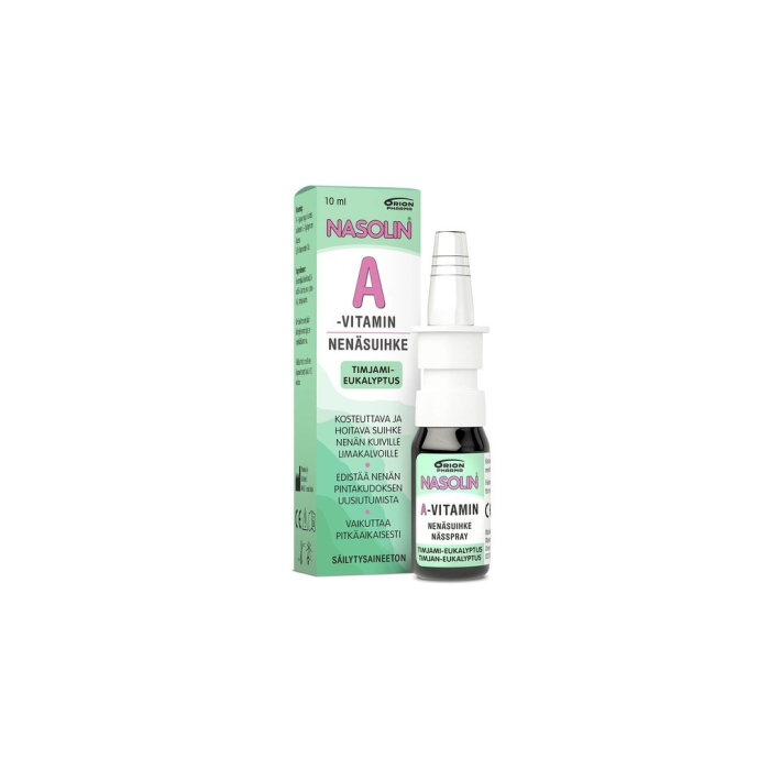 Nasolin A-vitamin nenäsuihkeet ovat kosteuttavia ja hoitavia nenäsuihkeita, jotka sisältävät seesamiöljyä ja A-vitamiinia. Ne kosteuttavat ja hoitavat kuivia nenän limakalvoja ja auttavat niitä pysymään terveinä.